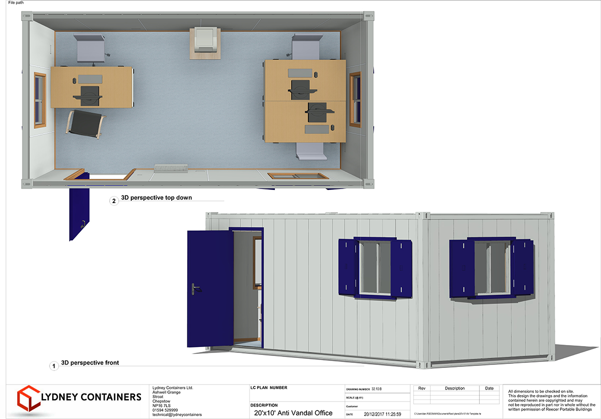 Lydney Containers Anti-Vandal Offices provide a clean and comfortable work environment that can be designed for use in a variety of applications, whilst always offering optimum security for sites where theft and vandalism could pose a problem.