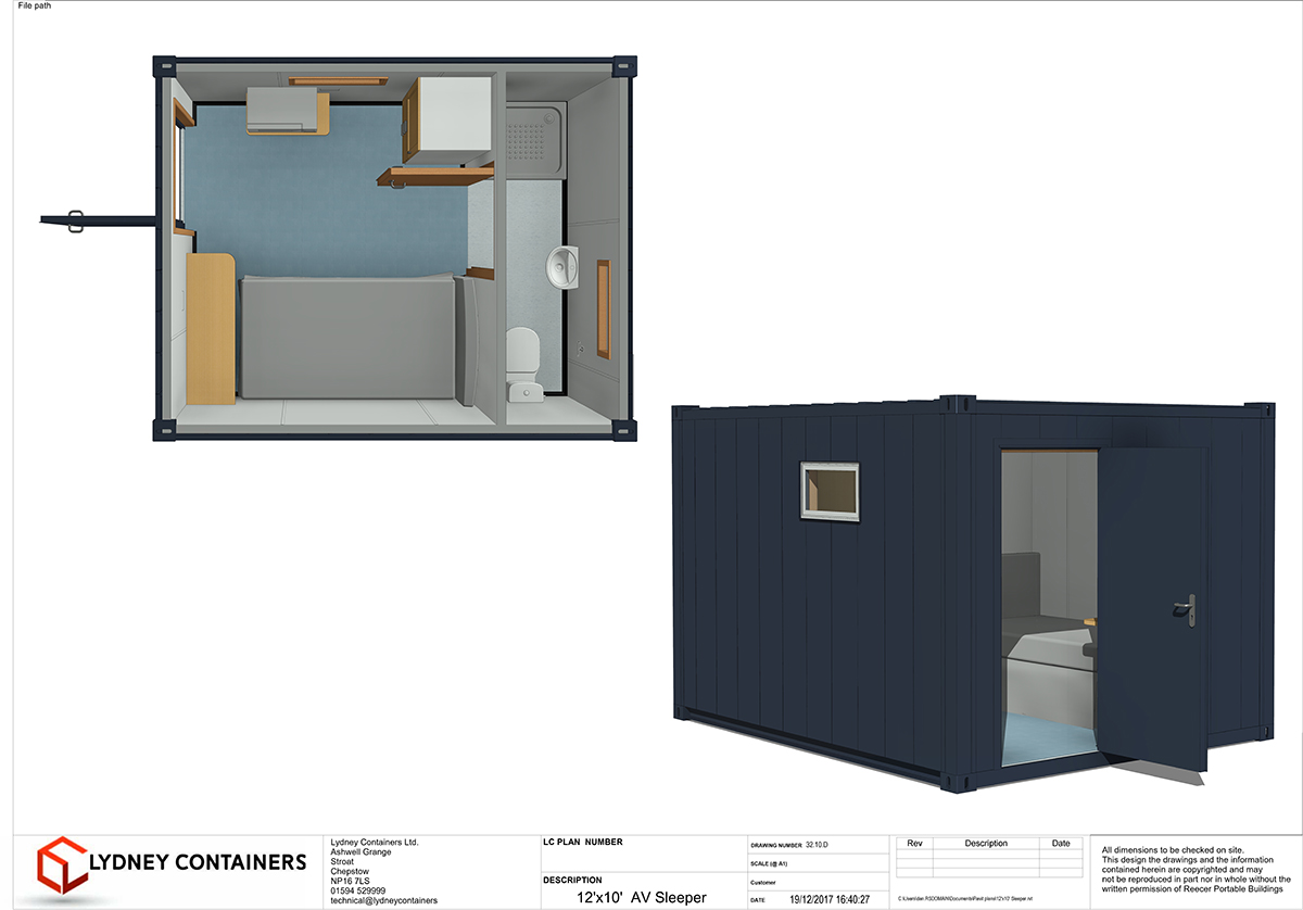 All our anti-vandal Sleeping Accommodation come complete, as standard, with a bedroom / living area, WC / shower facility, heating, lighting and double glassed windows.